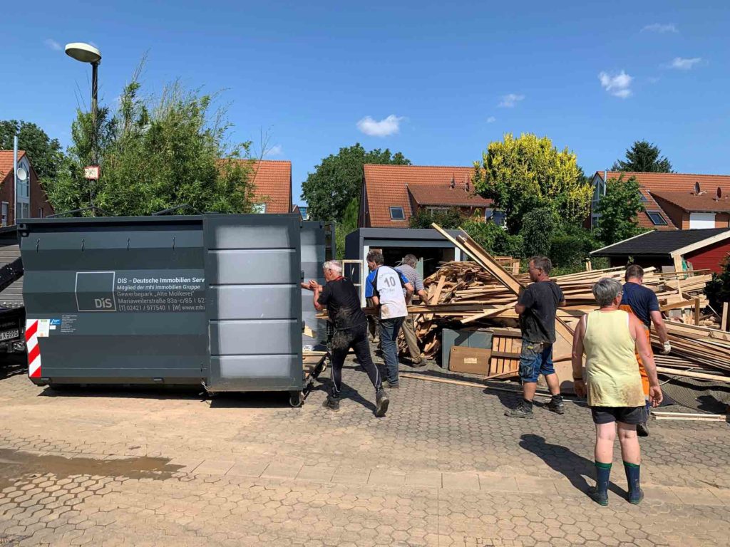 „Unmittelbar nach den Überflutungen waren wir zur aktiven Unterstützung mit LKW und Maschinen in Kierdorf im Kreis Erftstadt vor Ort und über das Ausmaß der Schäden sehr erschrocken. Tief betroffen mussten wir beobachten, wie die Menschen trauern, weil sie teils ihren gesamten Besitz und ihr Zuhause durch die Hochwasser-